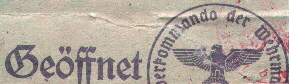 The mail of the generals of an army, military units and the ministers of the Reich government were not censored. Excluded from censorship were telegrams by authorities, corporations, institutions under public law and public institutes (e.g. chambers, hospitals) and offices of the National-Socialist Party.