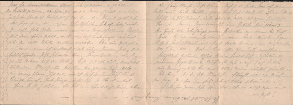 We billeted and mustered about five pounds of pork rations, fried it, drained it of fat, and picked up rationing. Then, finally, after three and a half weeks in them took off our clothes and went to sleep. A wonderful feeling!! Clean shaven, washed, socks and handkerchiefs clean I bunked with Neuman. The village, which the main battle front divides, is called Junpfen. En route again, misery, saw misery, and saw a looting soldier, since he broke into the homes and destroyed them just for the sake of destruction! But enough about that. I am sorry that your suitcases are missing, but let's hope they'll be found in the end. If Uncle Gustav stays in Deutschkrone, we at least have some hope of one day getting our things back. What I miss most from my suitcases are my civilian boots and my house slippers! My writing paper is gone as well. I was able to muster 20 chips of shaving soap and some tobacco as well as a pound of butter (from Schröter)! But enough about that. The main thing is that all of you, my loved ones, are in good health and safe in Berlin. I think we're surrounded again because most of our forces are in Danzig and cannot move it into Stettin. Let's hope for the best! Don't you worry about me, I'll manage!